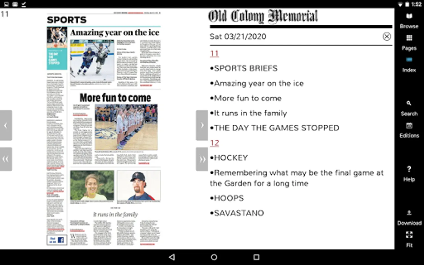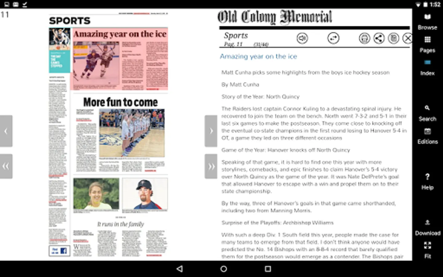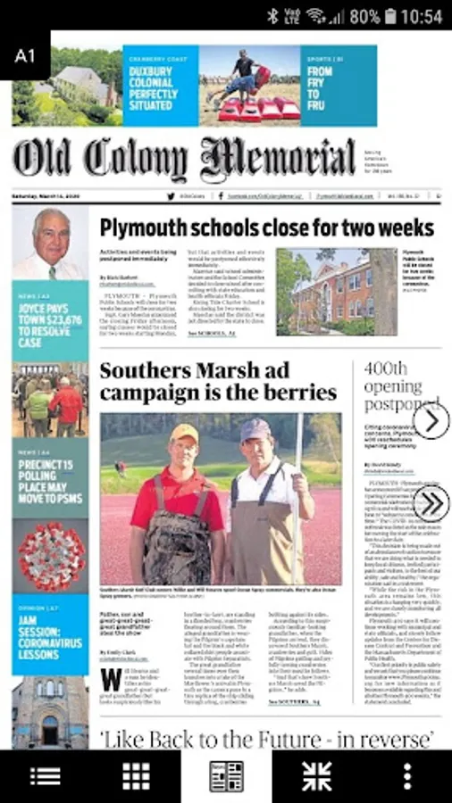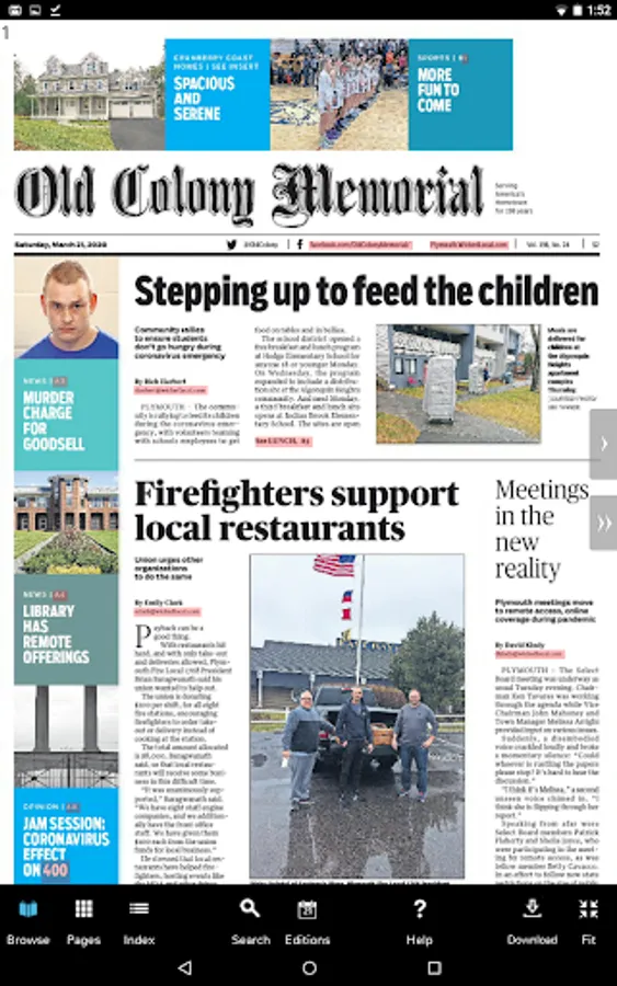 Old Colony Memorial eNewspaper is an exact digital replica of the printed newspaper. Readers of the paper can flip through the pages, read stories, photos, and view ads just they appeared in print.