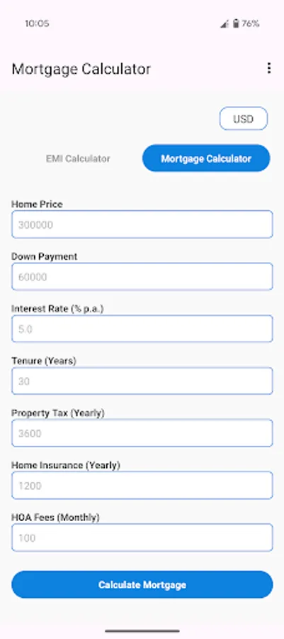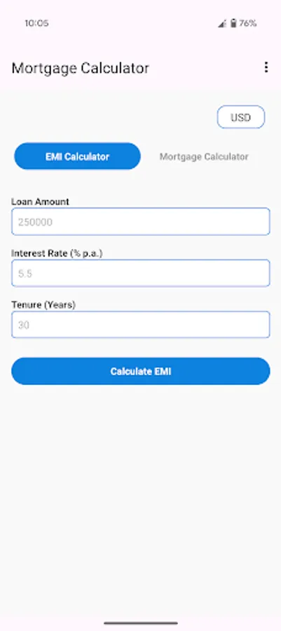 User-Friendly Interface: Navigate effortlessly between EMI and Mortgage calculation modes with a clean and intuitive design.
