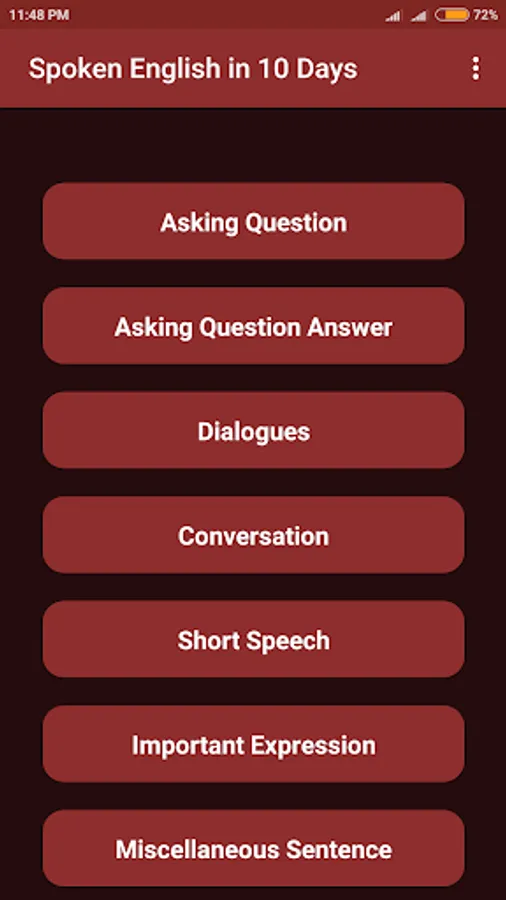 Spoken English in 10 days is an application, specially made for the people who want to learn spoken english. We have tried to put lots of examples in this app. All you have to do is practice more and more with those examples. In this application we have discussed different parts of grammar. Each section has lots of examples with understandings of the very basic concepts.