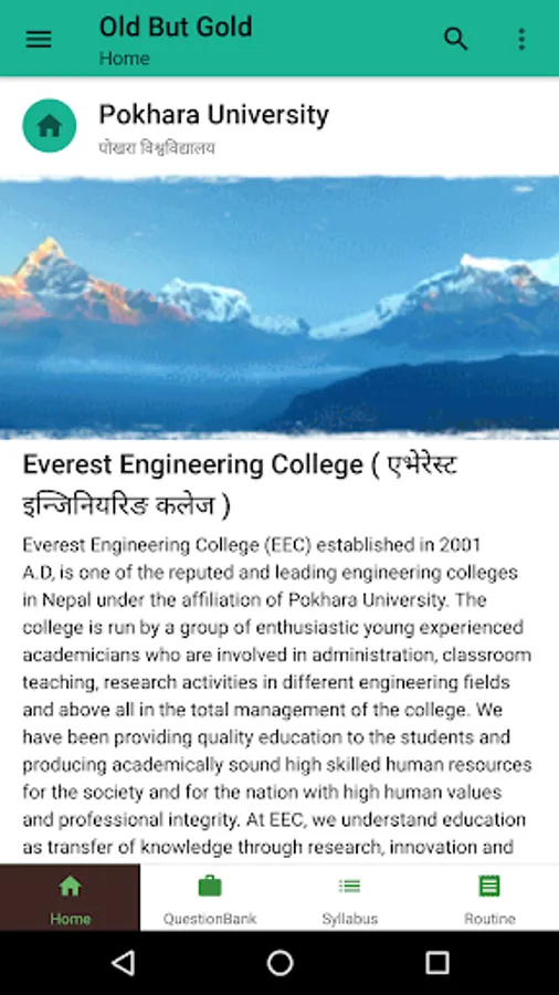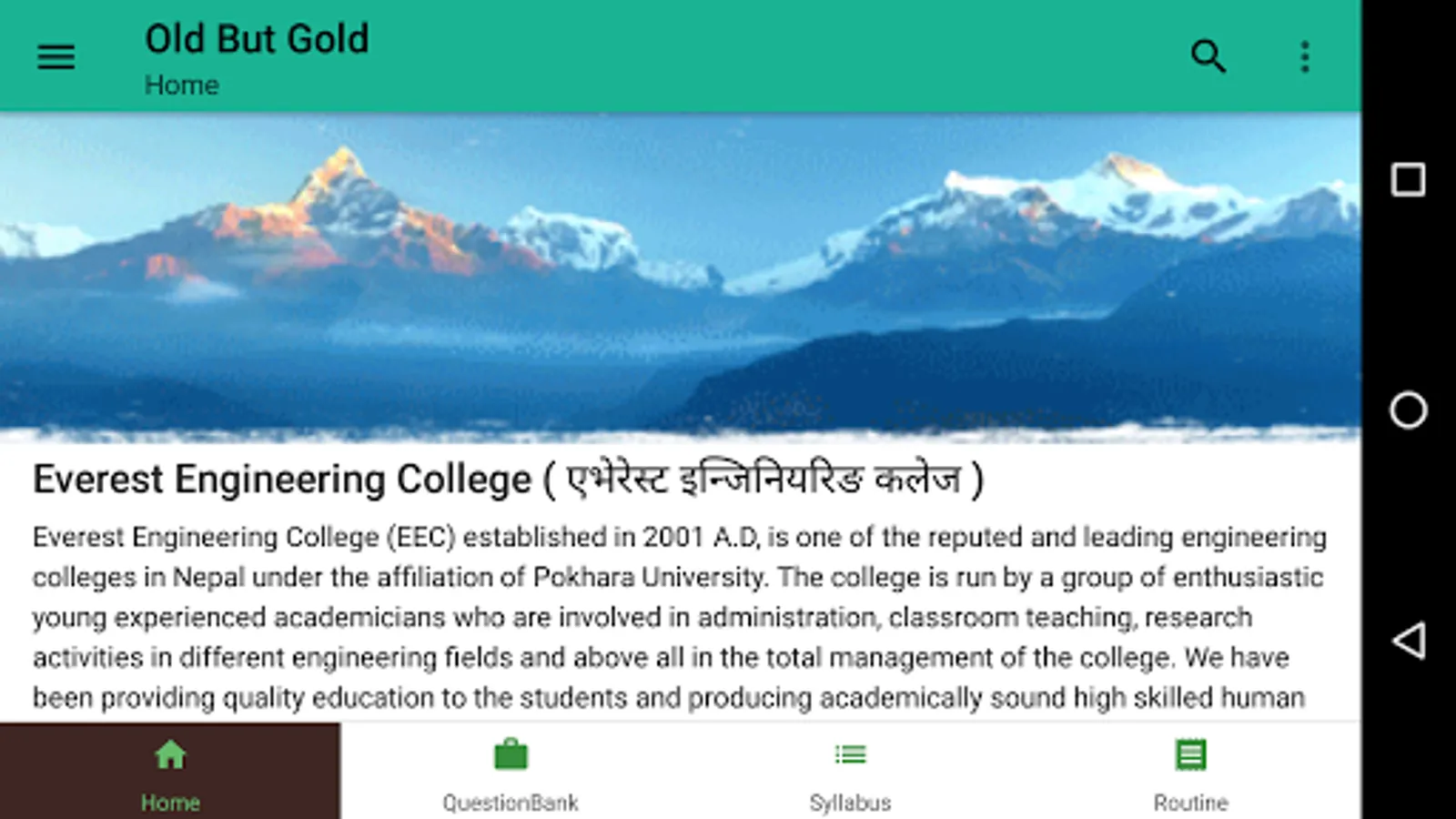 The best time saving solutions, Old But Gold: Questions Bank - Syllabus - Routine application for Pokhara - University. You can view old questions, syllabus and recent routine inside this single application. Routine can be viewed by filtering on the basis of semester, program and university. This application is fully developed in react - native as per my interest.