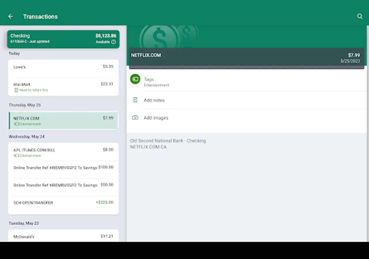 Keep your transactions organized by allowing you to add tags, notes and photos of receipts and checks.