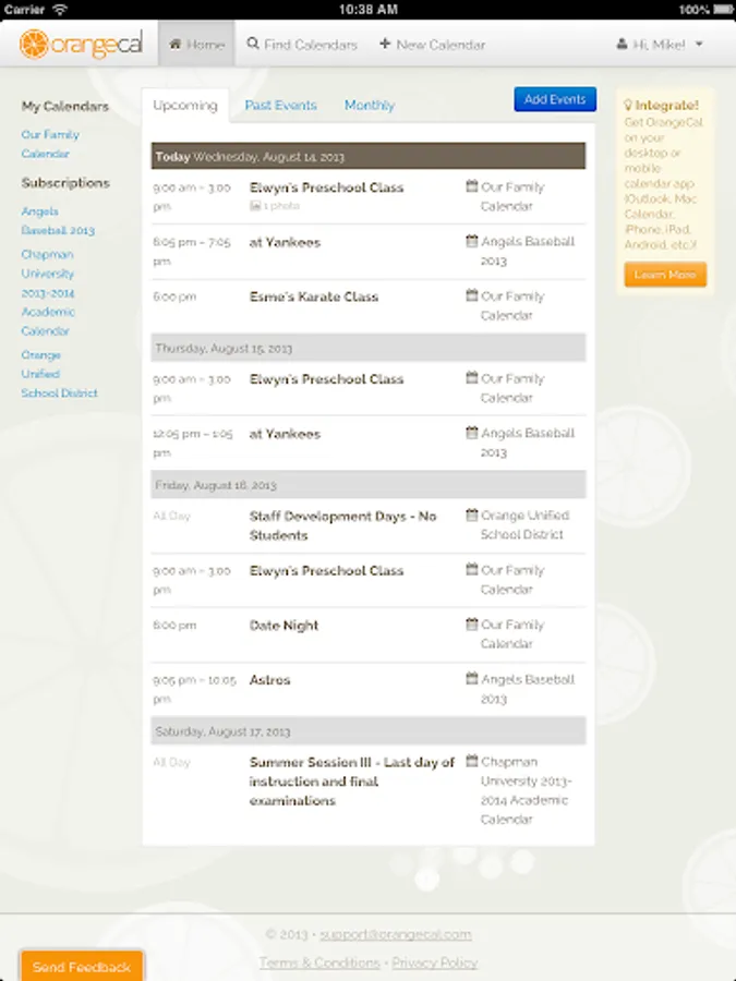 OrangeCal helps you manage all the calendars for your organization or small business. With OrangeCal you can make a calendar to share privately with people in your organization, or to share publicly with the whole community (for example, to share your non-profit's volunteer calendar for anyone to see). Best of all, OrangeCal is available on mobile and on desktop.