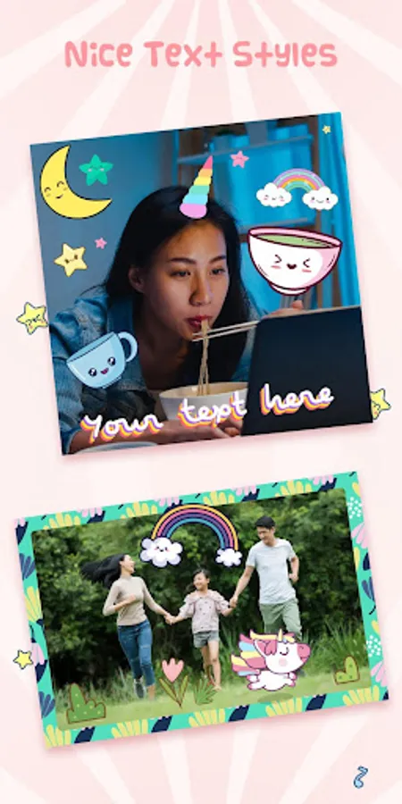 Handy and easy to use kawaii photo editor for your nice photos. Edit photo, add nice stickers, cute frames, beautiful layouts and text with rich formatting and fun styles.
