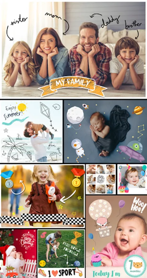 Creating collages has never been easier thanks to Cute's multitude of layout options. Seamlessly combine multiple photos into beautifully arranged compositions, allowing you to tell a visual story of your baby's growth. Whether you prefer a classic grid layout or a more intricate arrangement, our flexible collage options will bring your images to life.