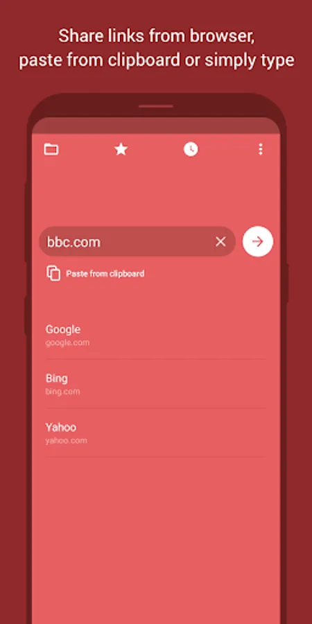 - You can share link from your web browser, paste it from clipboard or type directly in the app.