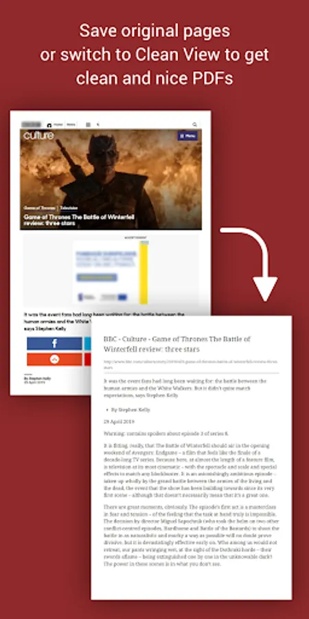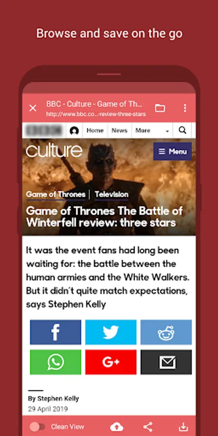 - Clean View will keep only content of page (i.e. article) and remove the rest.