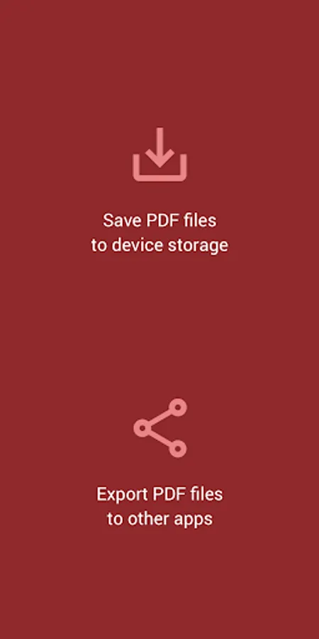 - Save PDF files to device storage or export to other apps or upload directly to Google Drive
