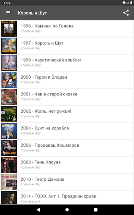 Application developers comply with the rules of copyright and have nothing to do with the King and the Jester group. All material, albums and songs are the property of the group. We are ready to add links and other additional information at the request of content owners. Sincerely, The King and the Jester app developers.