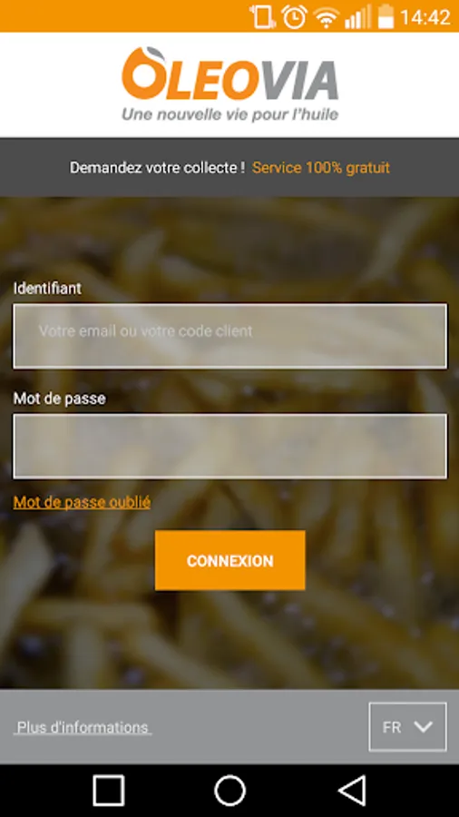 You are professional catering and food industries? Oleovia makes your daily free by collecting and recycling your used cooking oils and fats. Through the application reserved for Oleovia customers, select your business and build your collection with one click request.