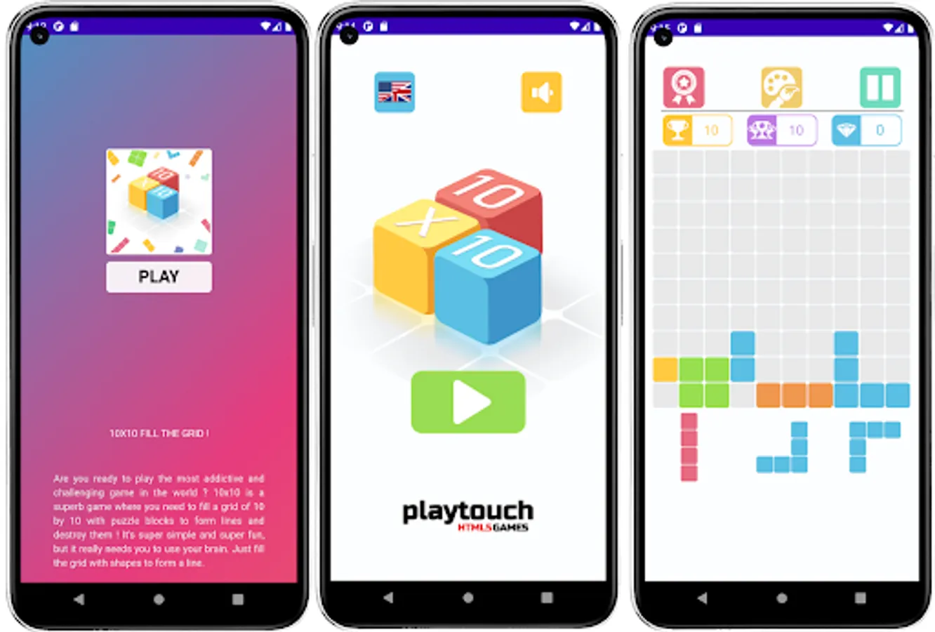 Are you ready to play the most addictive and challenging game in the world ? 10x10 is a superb game where you need to fill a grid of 10 by 10 with puzzle blocks to form lines and destroy them ! It's super simple and super fun, but it really needs you to use your brain. Just fill the grid with shapes to form a line.