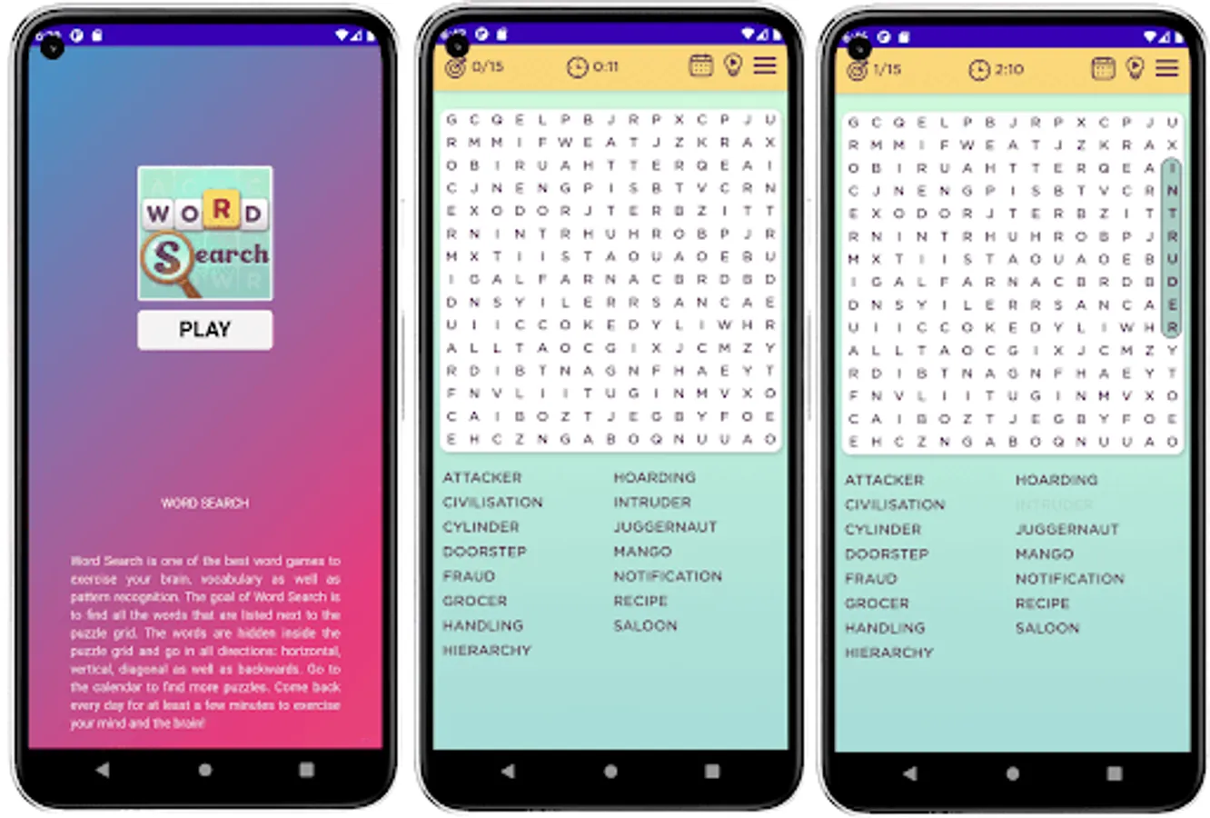 Word Search is one of the best word games to exercise your brain, vocabulary as well as pattern recognition. The goal of Word Search is to find all the words that are listed next to the puzzle grid. The words are hidden inside the puzzle grid and go in all directions: horizontal, vertical, diagonal as well as backwards. Go to the calendar to find more puzzles. Come back every day for at least a few minutes to exercise your mind and the brain!
