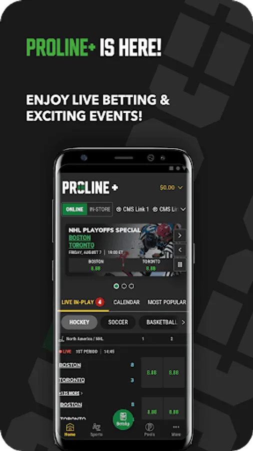 Play Online or In-Store. Now with PROLINE+, you can make wagers directly in the app, bet on live games, and cash out with the press of a button. Staying with the in-store PROLINE experience? Build your bet in the app before heading to the store. With the new offerings of PROLINE and PROLINE+ on OLG’s App, you can bet how you want to.
