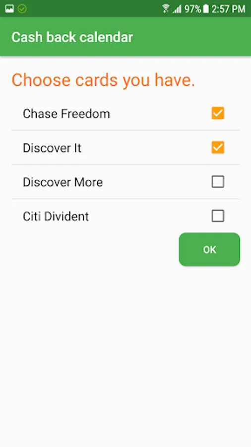 This application will help to manage credit cards with rotating cash back categories. It will get you a hint when you are in store and confused which card to use to get the highest cash back.