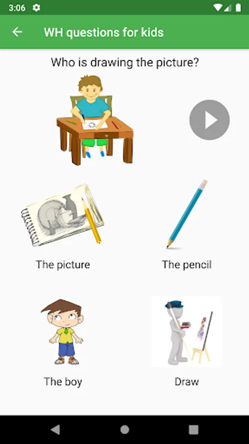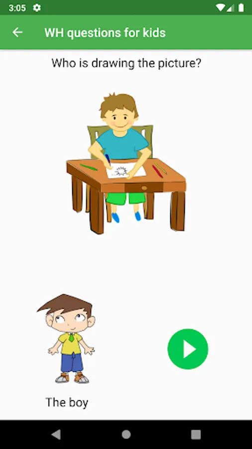 This educational application will help your children to learn how to ask and answer questions in two languages: English and Russian. Your child does not have to be able to read. All the descriptions are voiced.
