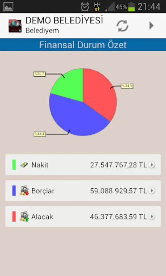 + Summary: cash, debt and receivables are shown together with the summary of the pie and bar charts.