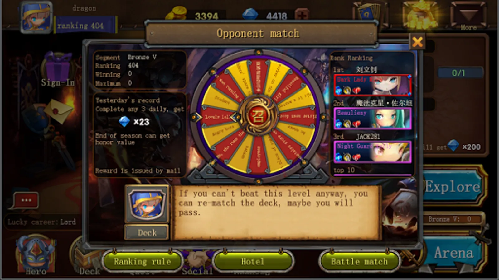 PvP Battle of the Gods: Advanced players have different levels of diamonds, such as 1000 diamond rounds, 1000 diamonds won, 1000 diamonds lost