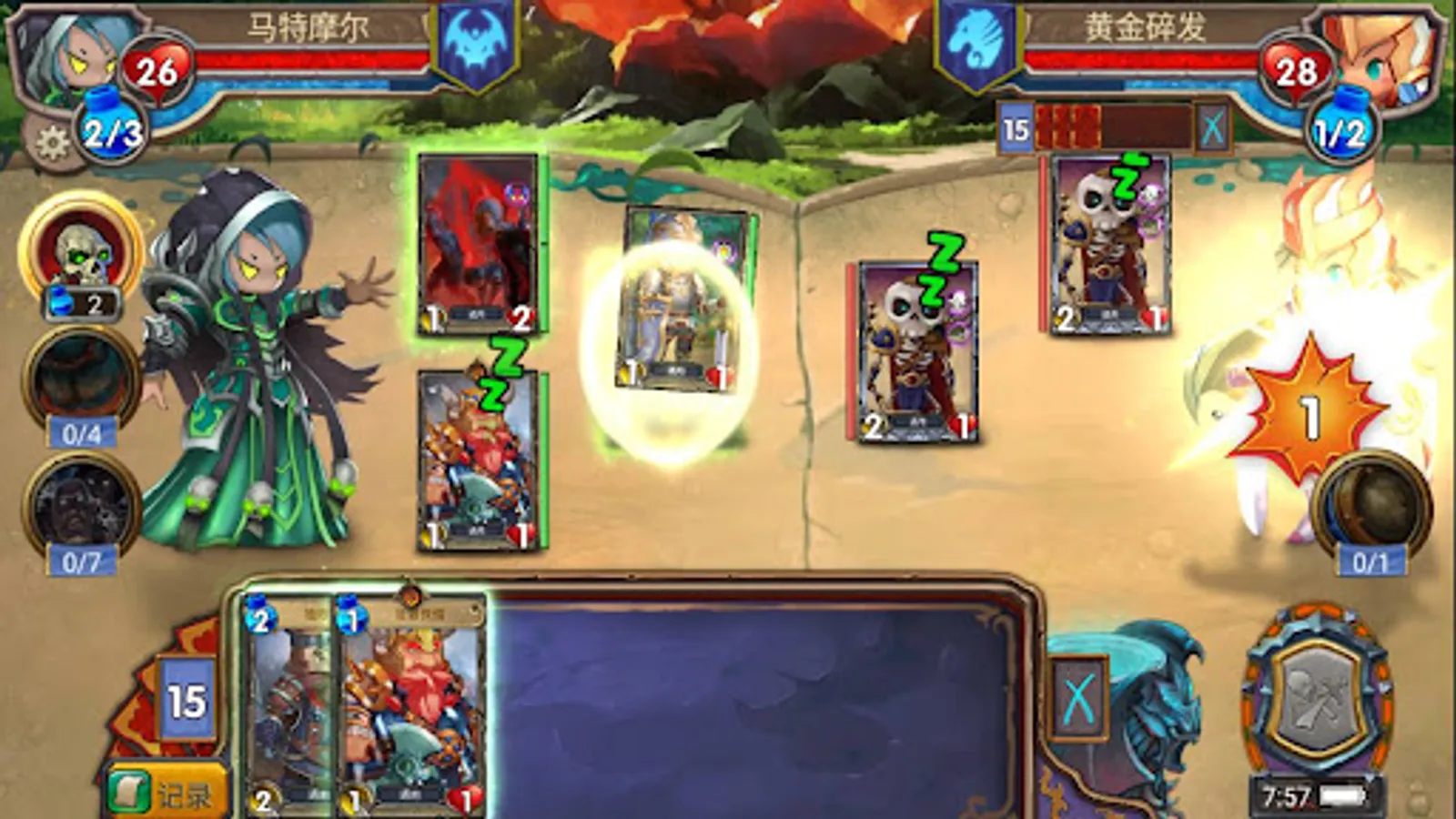 2. The card just placed will be in the sleep state. When the card is not in the sleep state, you can drag the mouse to attack the enemy card or hero. The action of the card does not require energy consumption.