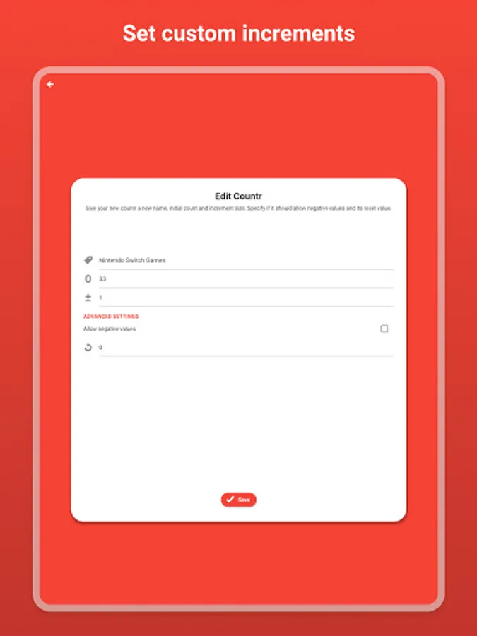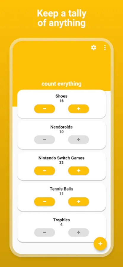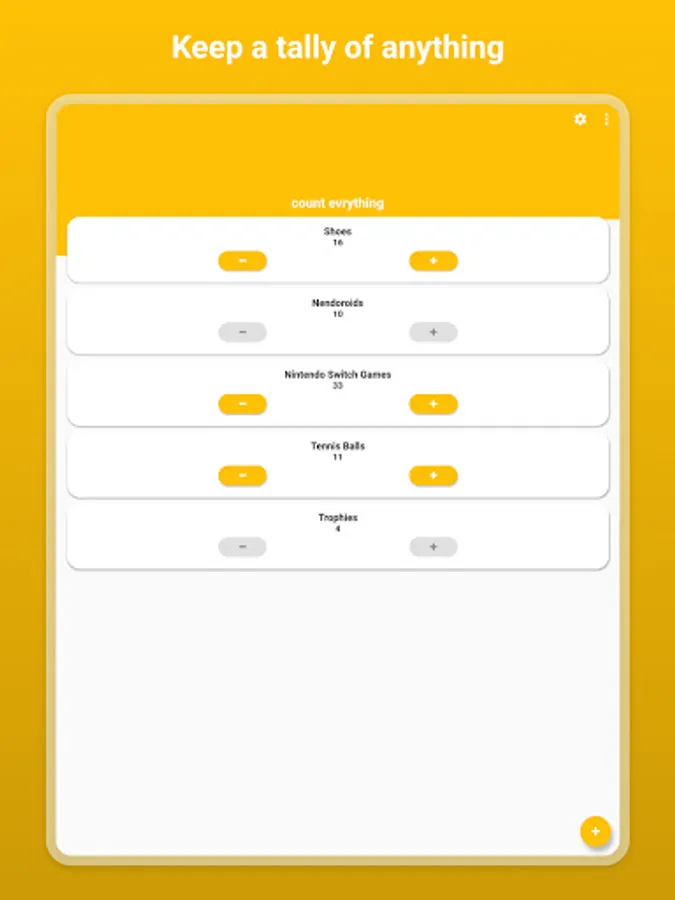Count everything from score, how many wins, people, kisses, games, cars or anything you need to keep track of! Tally your stuff in style.