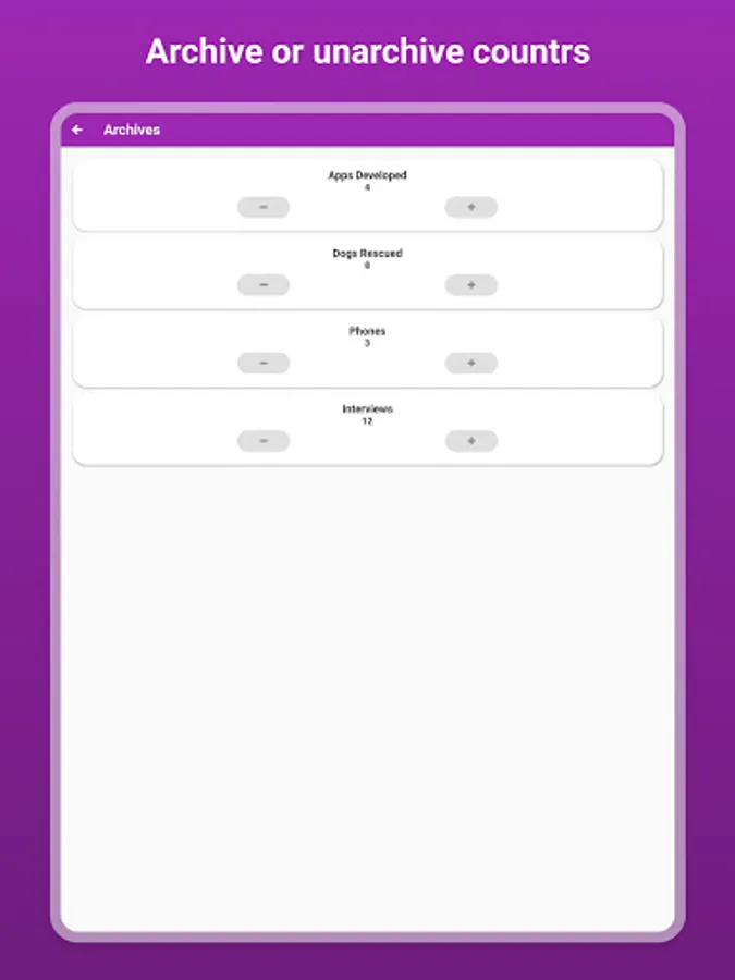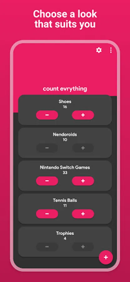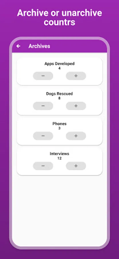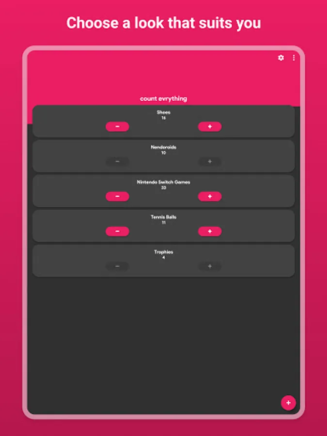 Customize the look of the app by choosing your favorite color! There's also dark mode available to make it easier on the eyes. Counters can also play a sound and provide haptic feedback/vibration for you to be able to count easier.