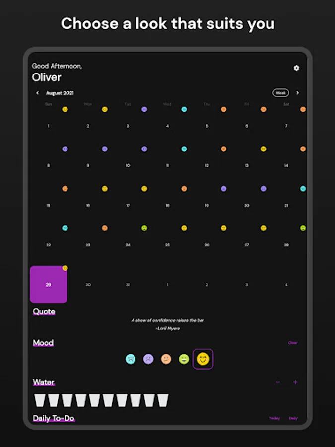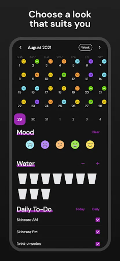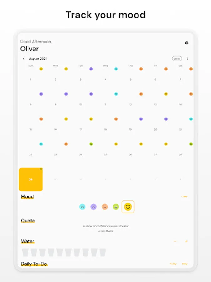 Mood tracker to remind you of how your days have been, be more aware, and the upcoming pixel view to help you visualize how your mood has been for the past months