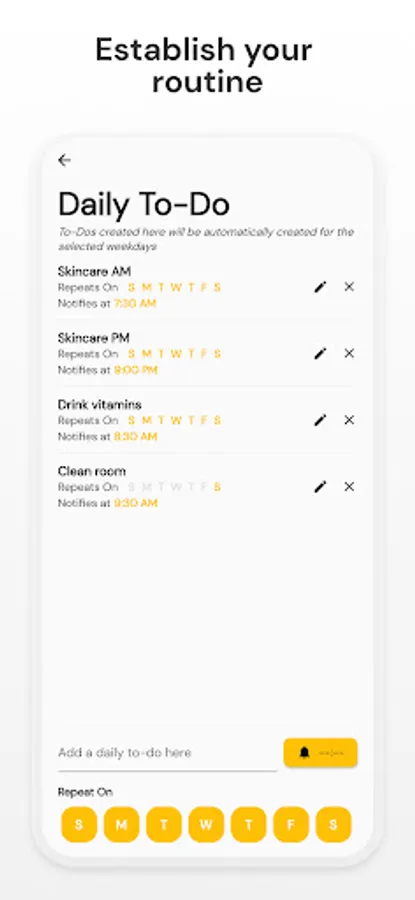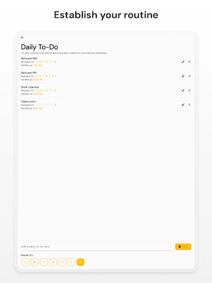 Daily to-dos which are basically to-do lists that refresh everyday or on days that you pick so that we can help you establish a healthy routine or build up a new habit