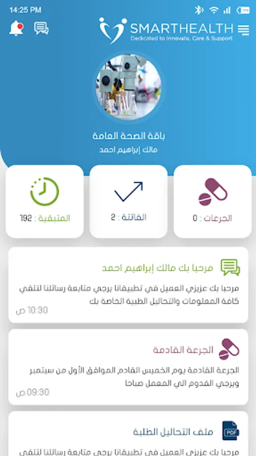 يساعد تطبيق SmartHealth في تحديد الجرعة ويذكر المرضى عندما يحتاجون إلى تناول أدويتهم، مما يزيد من معدلات الامتثال. يمكن أيضًا مشاركة المعلومات مع فريق الرعاية الصحية والصيدلية.
