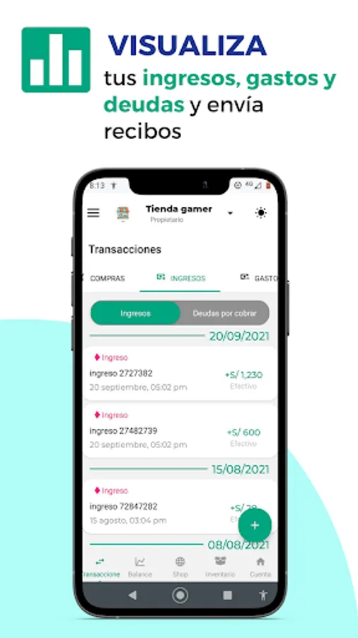 »Registra deudas por cobrar, deudas por pagar y abonos de las deudas. De esta manera podrás estar al día el pago y cobro de tus deudas.
