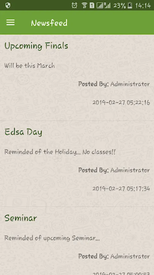 - Newsfeed - Updates on announcements, events, activities, and upcoming programs posted by admin