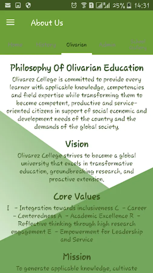 - About Us - Provides basic information about Olivarez College, the Administrators of the school and a Photo Gallery