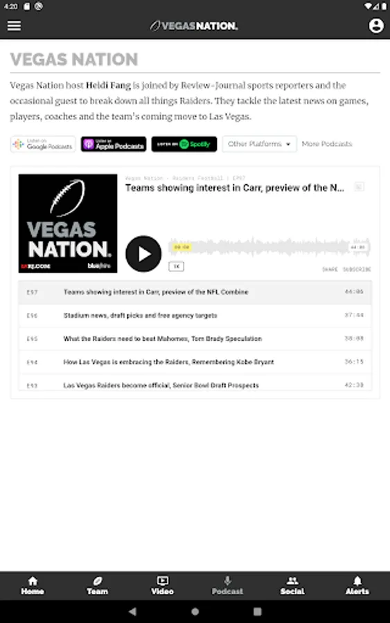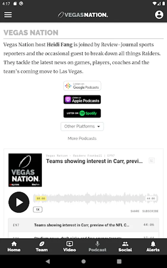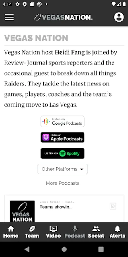 Access: The updated VEGAS NATION app mirrors the experience of using the vegasnation.com mobile site. All website content is available, including exclusive podcasts, videos and live-streamed coverage of press conferences and other news events.