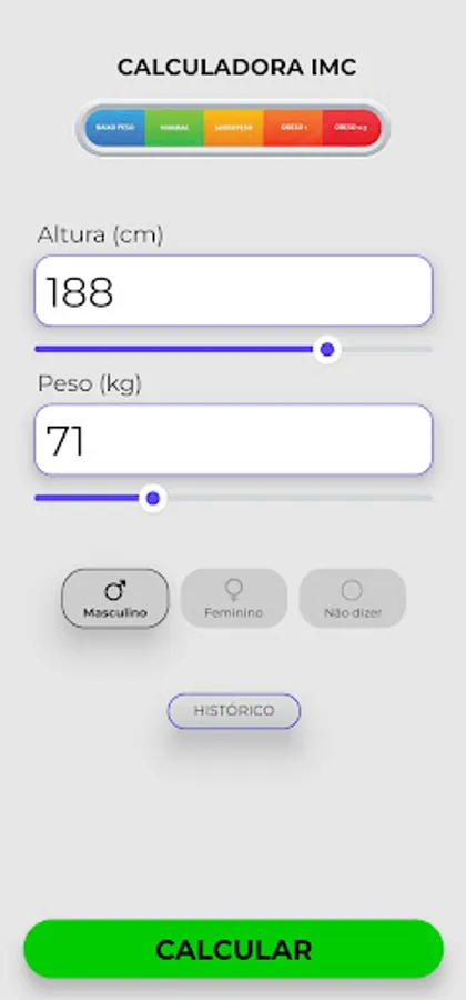 Calculate your Body Mass Index through this app. Just enter your weight and height and calculate.