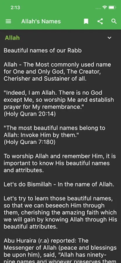 There is a push notification feature which will inform the users instantly whenever there will be an update on the explanations added which will be done on a daily basis till all the 99 names of Allah are explained and uploaded. The reason for explaining and uploading Allah’s names on daily basis is to provoke the reader to ponder and reflect.