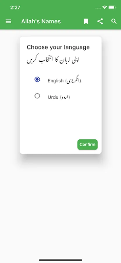 The readers can choose between the languages English or Urdu ( اردو ) to view the app.