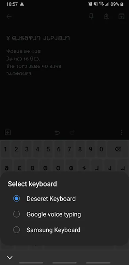 The Deseret alphabet is a phonetic alphabet for the English language developed under the direction of Brigham Young. This keyboard can be used to type using this dead alphabet in order to write secret messages or send something back in time to 1854 (this app does not support sending messages back in time yet).