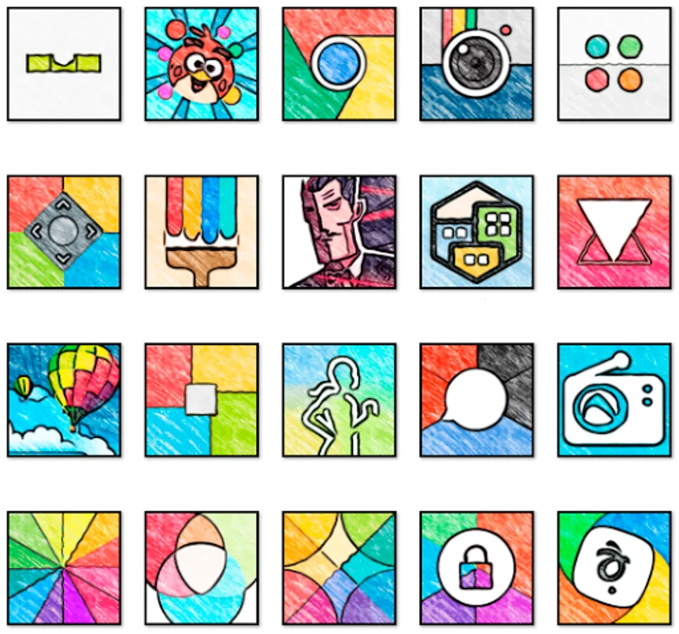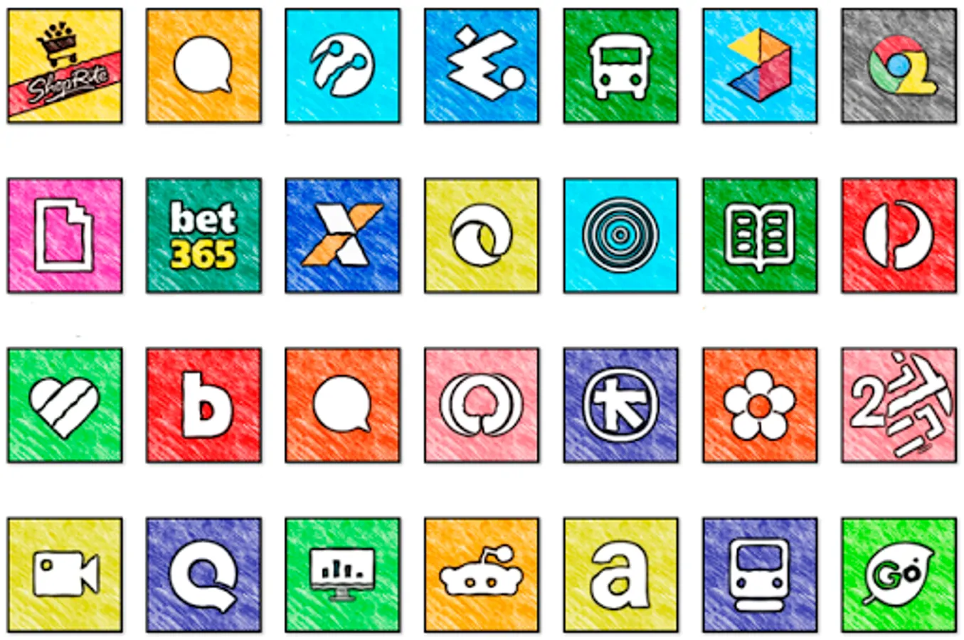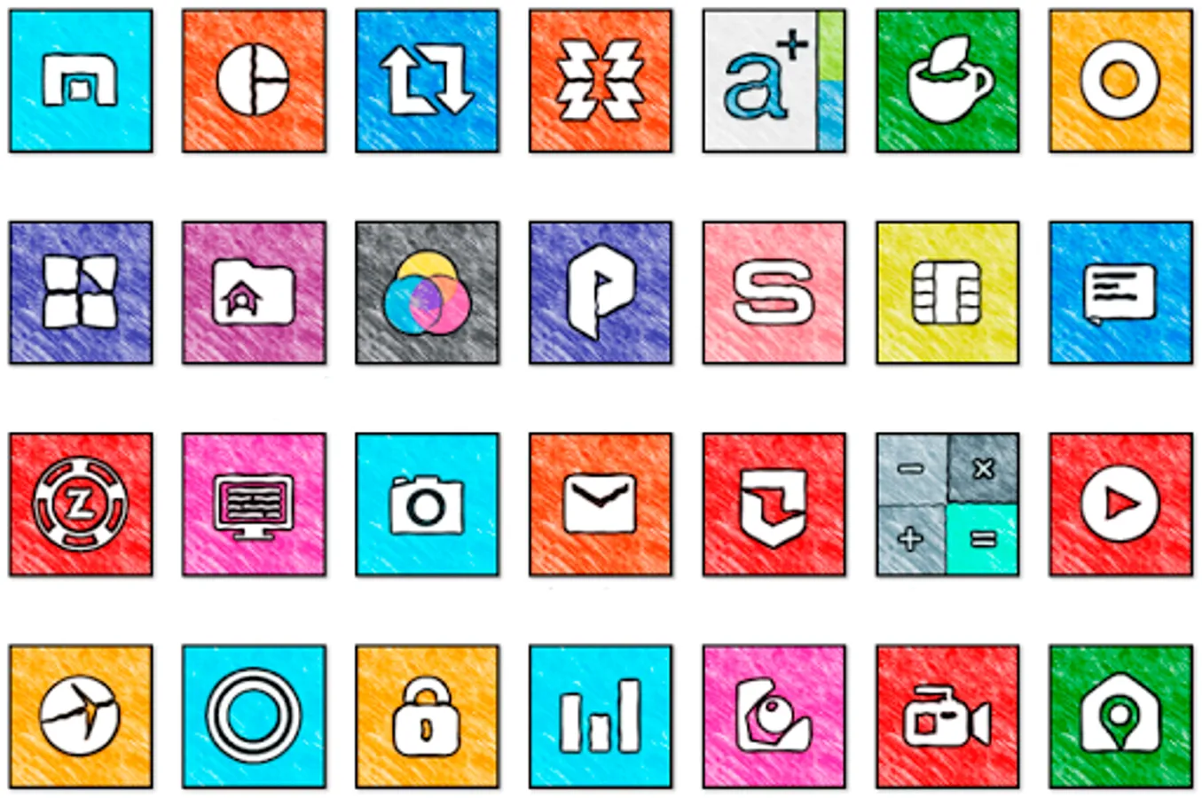 Enjoy these incredible hand-drawing icons, simulating crayon painting and a sketck-like style.
