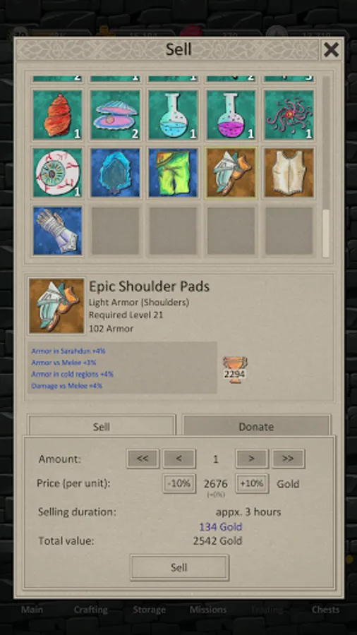 Trade your goods with fellow players in guild barter, buy in the guild shop or sell your goods on the marketplace.