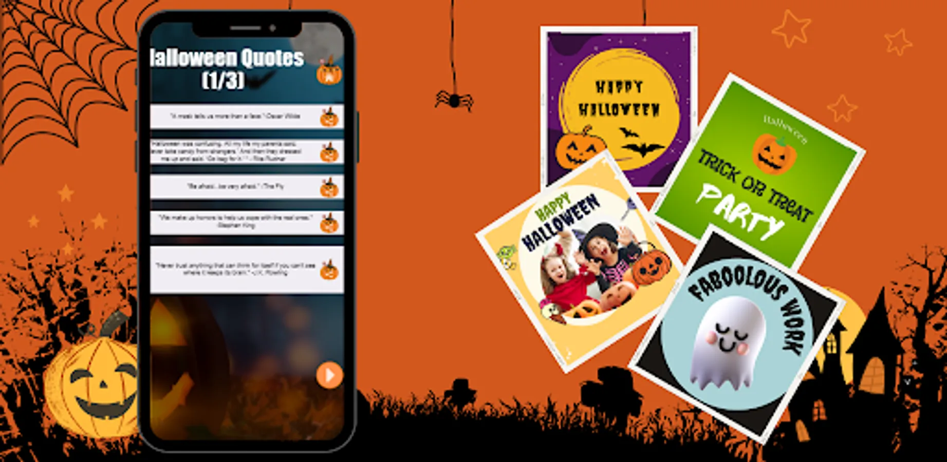 Halloween Cards Wishes 2023 App is a simple, quick, safe, and entertaining method to share greeting cards and wishes. Allow family and friends to receive your Halloween greetings cards and wishes and feel your love even if you are unable to be present in person. Choose from our great spooky quotes and messages to send with greeting cards for all occasions to communicate your heartfelt thoughts and wishes during this celebration.