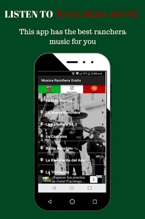 NOTE: This application requires an Internet connection to listen to Ranchera music stations radio. If you want to give us some opinion about Ranchera music Radio stations or to remove or add some of your favorite radio stations, contact us at oliver.guerrero84@gmail.com