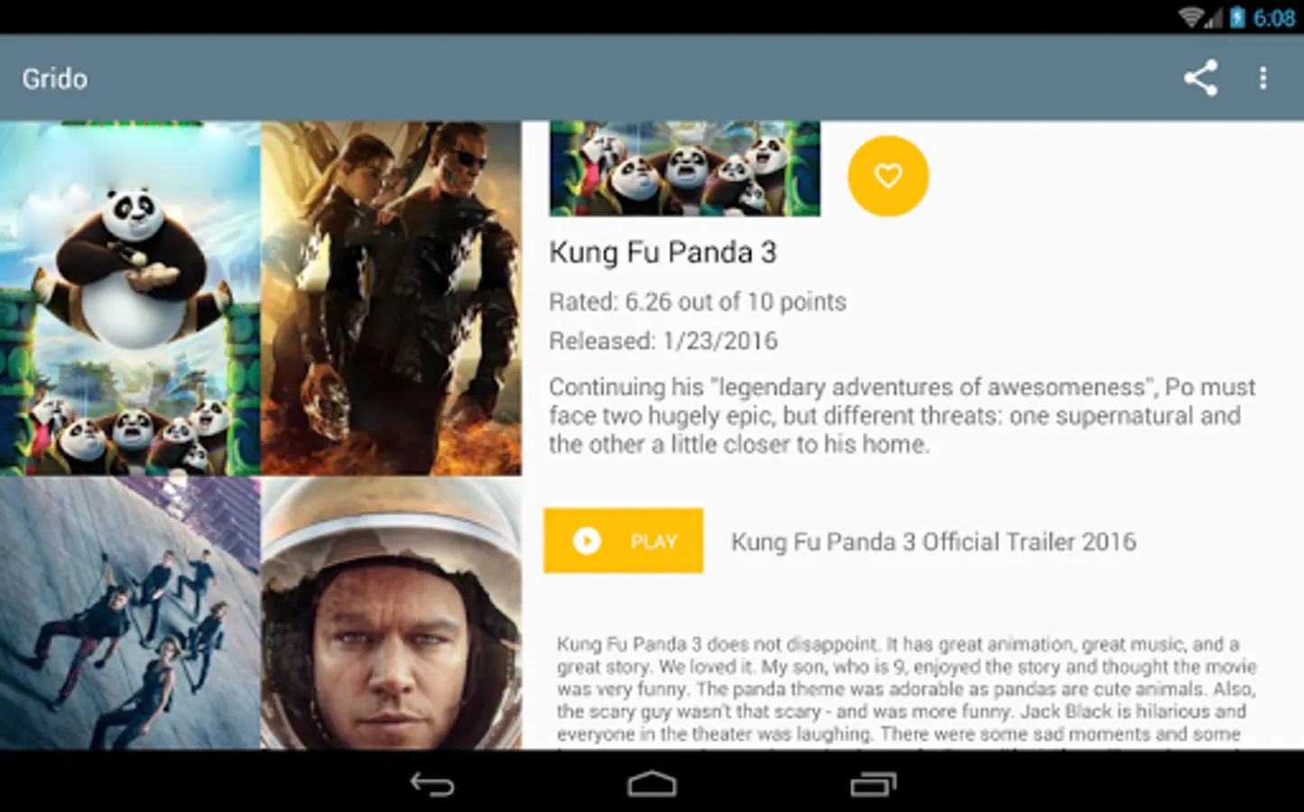 Fun little app to check out popular and or high rated movies. With movie posters, summary, reviews, and trailers via youtube.
