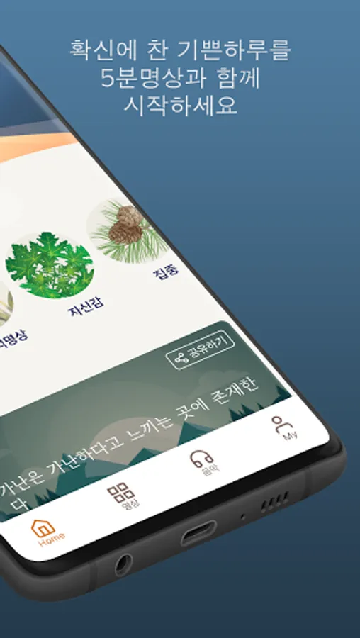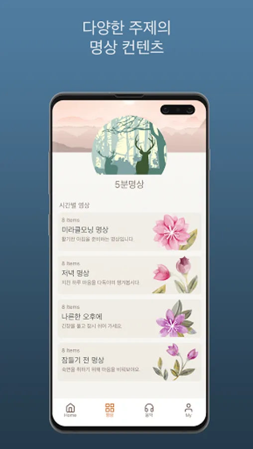 * In 5 Minute Meditation, you can meet various contents for free, such as topical meditation, ASMR containing the sounds of nature and everyday life, brain wave sounds that help concentration and sleep, and progressive muscle relaxation (PMR) that relieves stress.