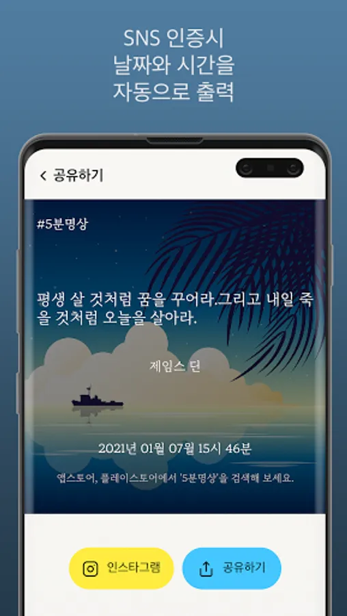 After using the meditation content, after viewing the sayings, you can verify the SNS by clicking the Authenticate or Share button.