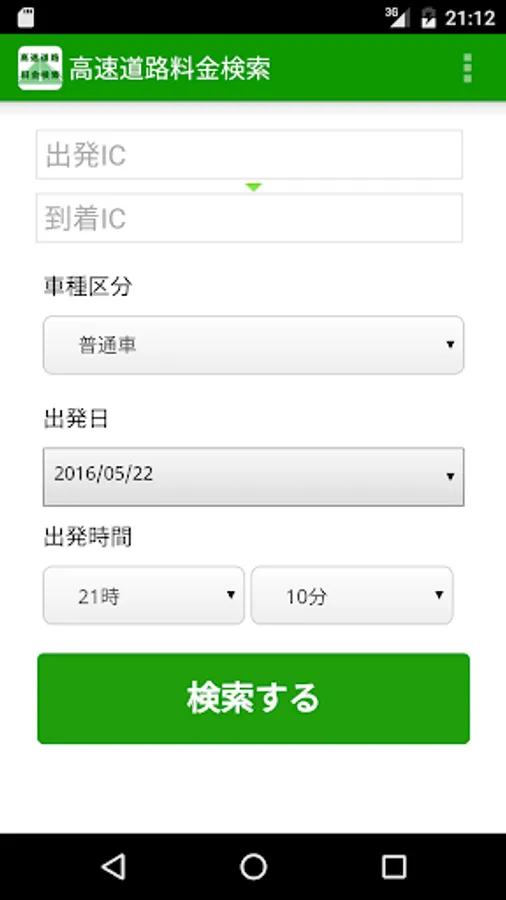 出発ICと到着ICを入力するだけで簡単に検索ができます。