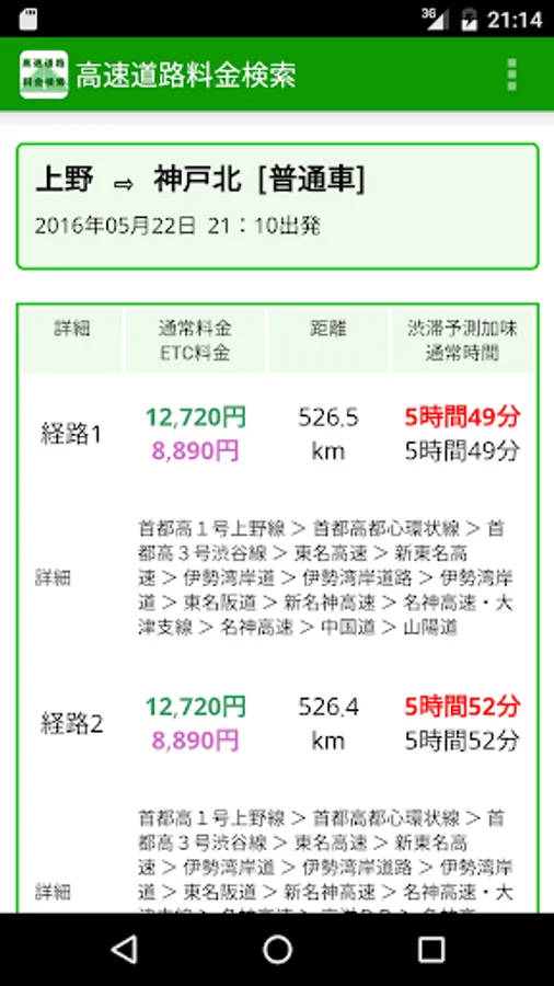 日本全国の高速道路のETCと通常料金を経路毎に検索できるアプリです。