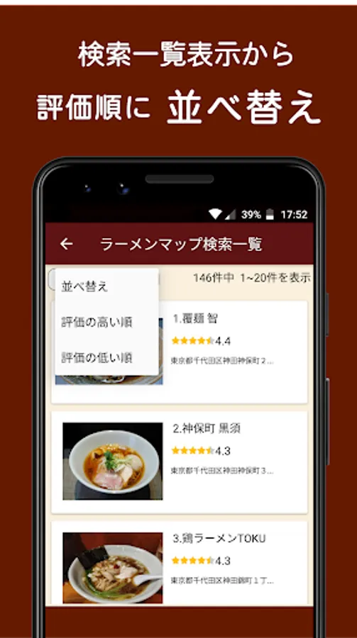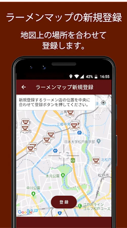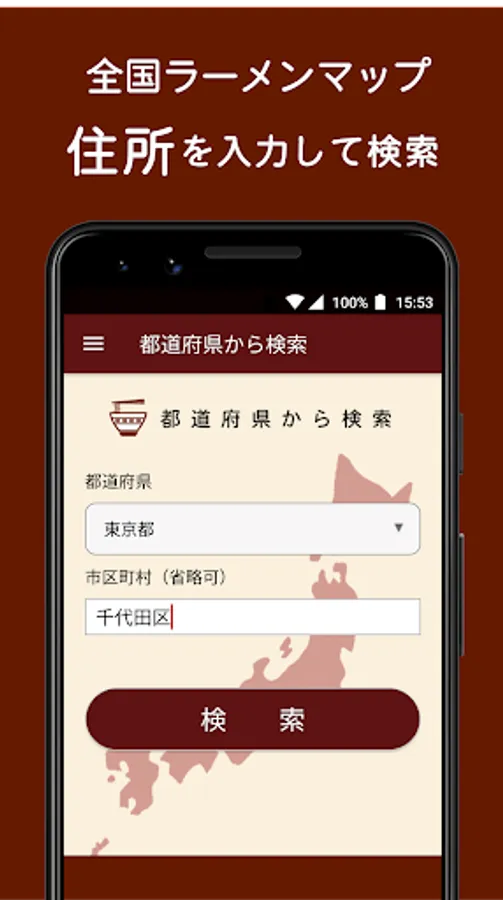 データベースから日本全国のラーメン店情報を取得してをマップ、一覧表示して検索するアプリです。