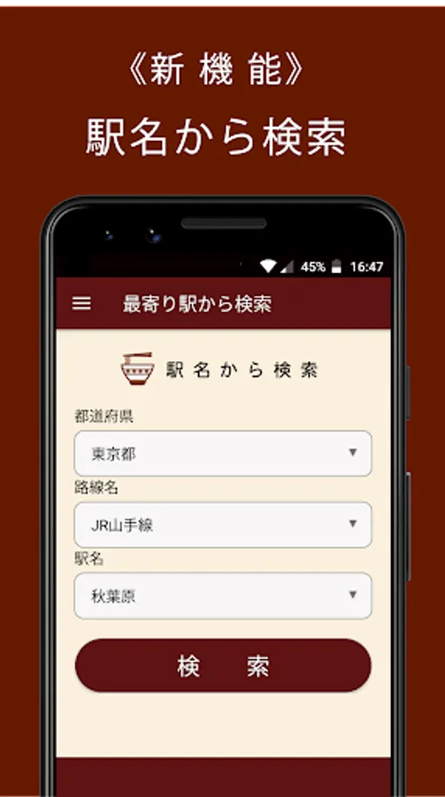 【新機能】駅名から最寄り駅のお店を一覧表示することができます。