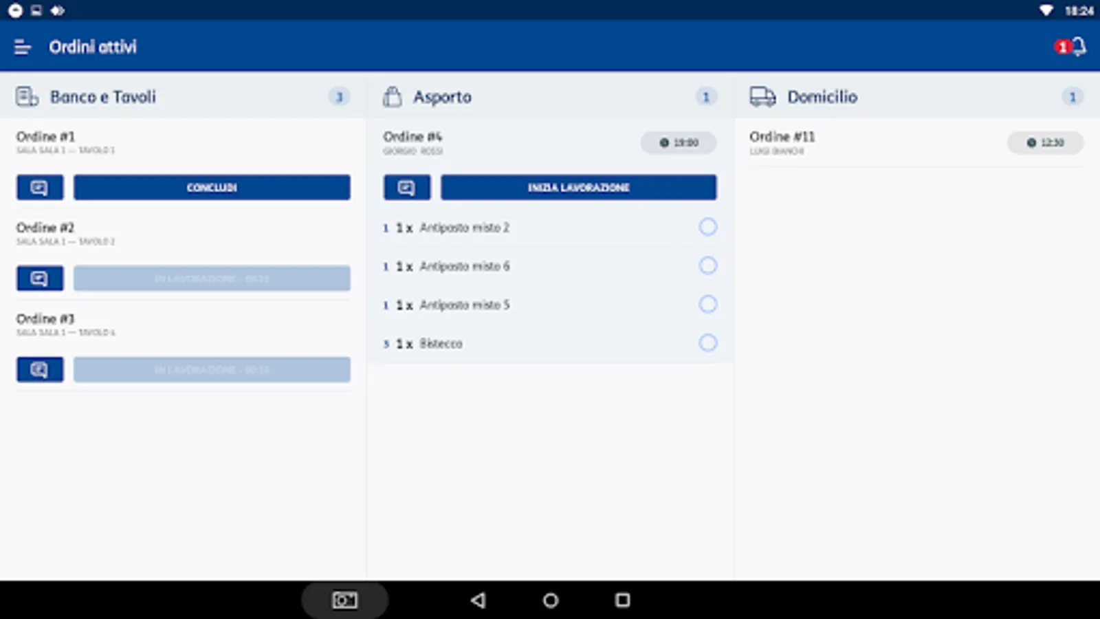 • personalization on the single device (multilingual support, favorite articles, setting of categories, order of flow, sounds and feed-back upon receipt of communications from the kitchen or counter);