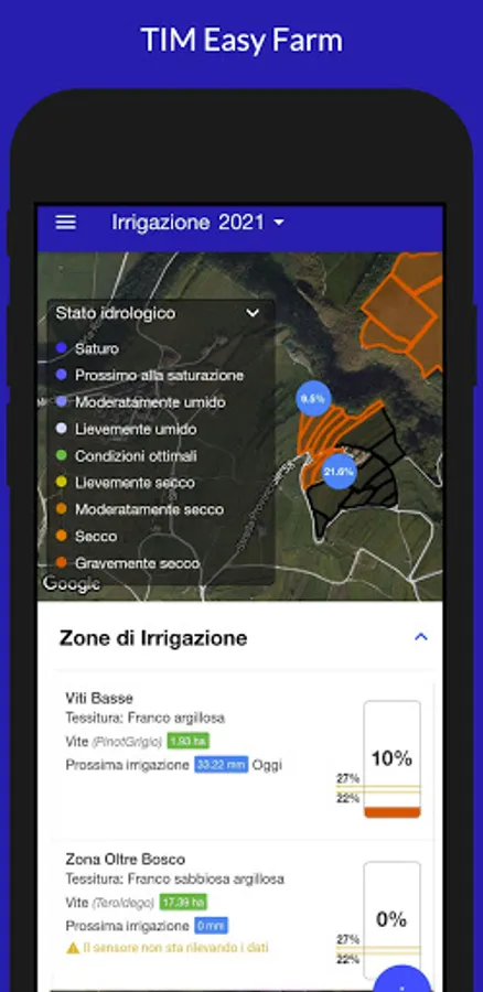 TIM Easy Farm is the precision agriculture service dedicated to farms that want to optimize their operations in the field and the resources used, thus obtaining savings on management and production costs. It is the perfect solution for farmers who want to put a sustainable digital agriculture model into practice.
