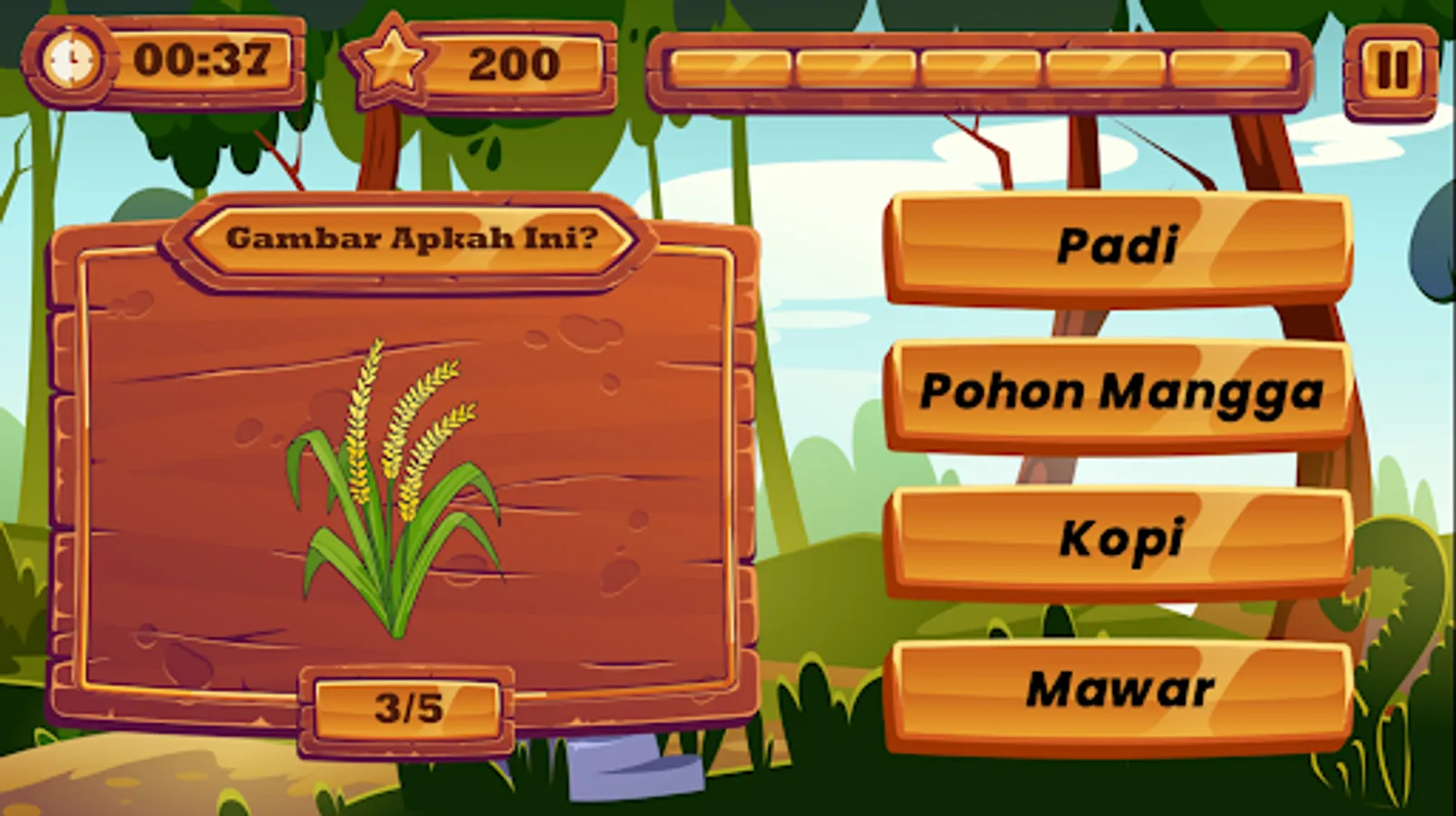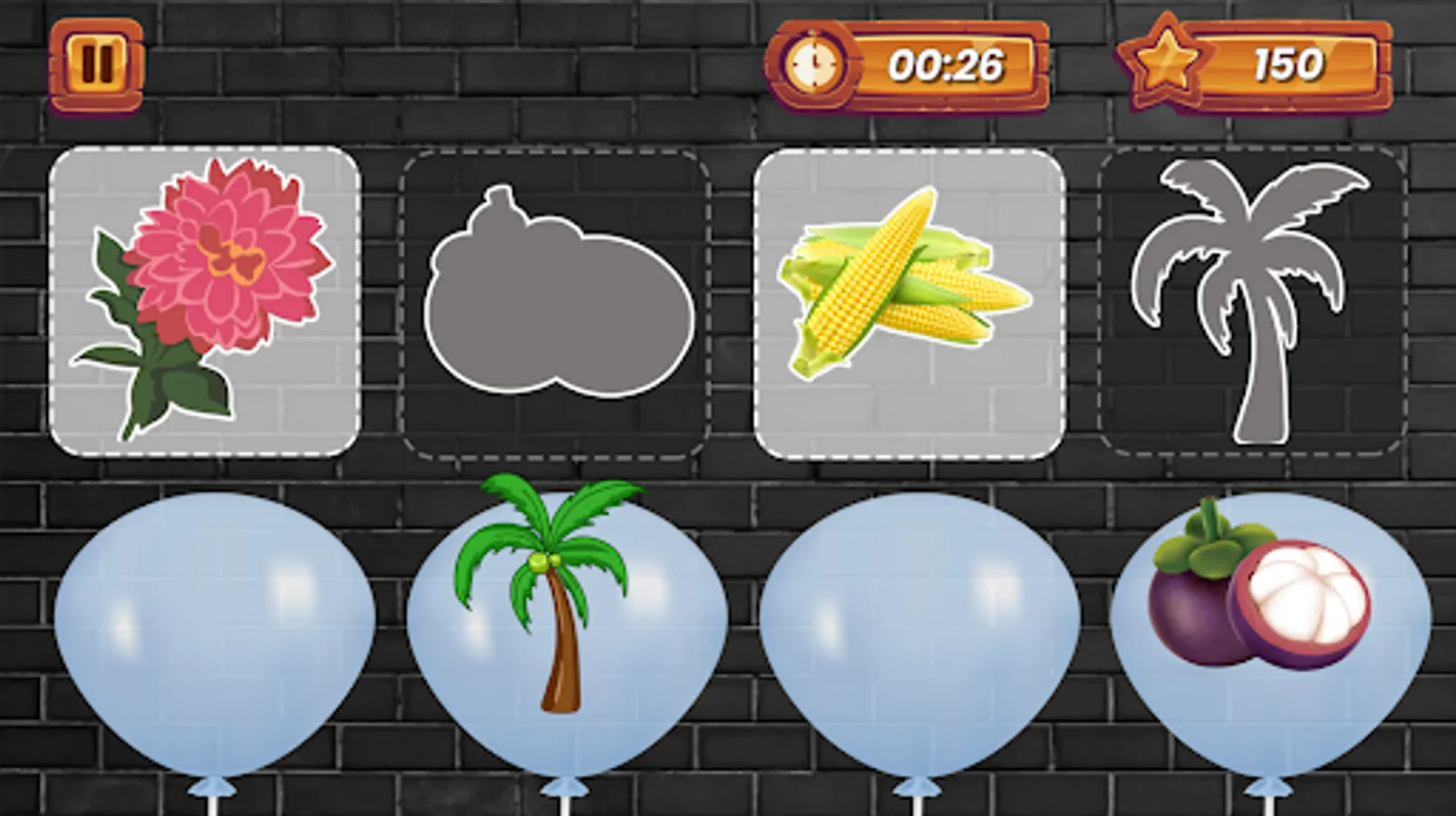 Guessing games and puzzles that contain fruit, animal and plant objects, in the picture guessing game there are 30 levels for each object