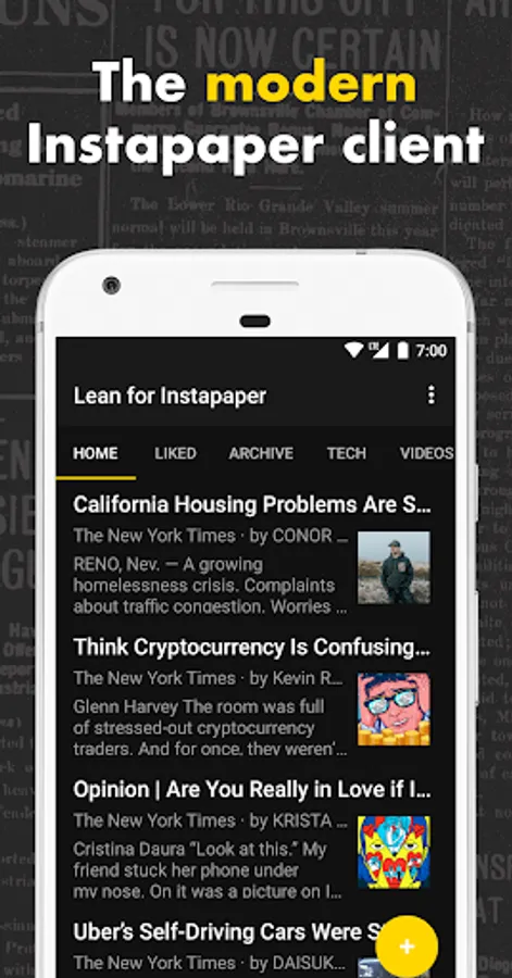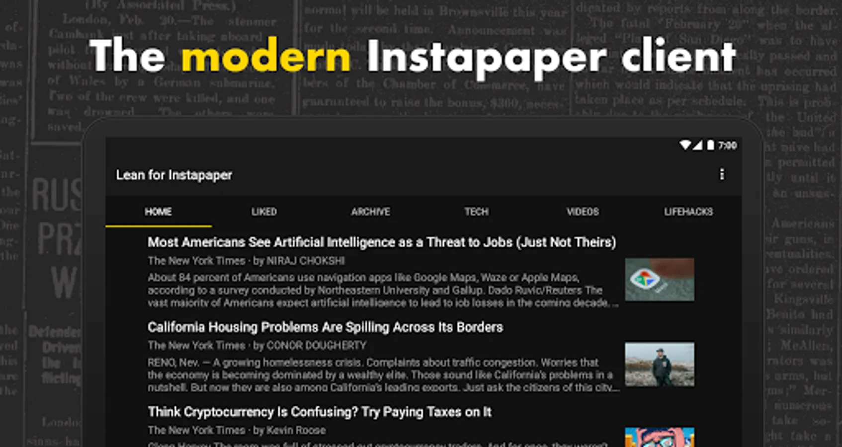 Lean for Instapaper is the fastest and most reliable Instapaper app on Android.