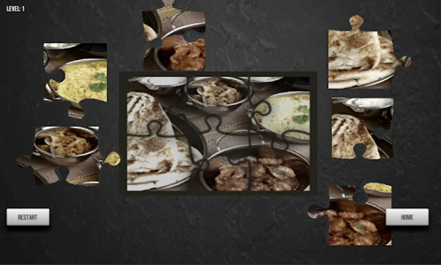This is a puzzle game. User needs to solve jigsaw puzzle of bangladeshi restaurant food images. There are 3 levels currently and lots of food images which appear randomly.